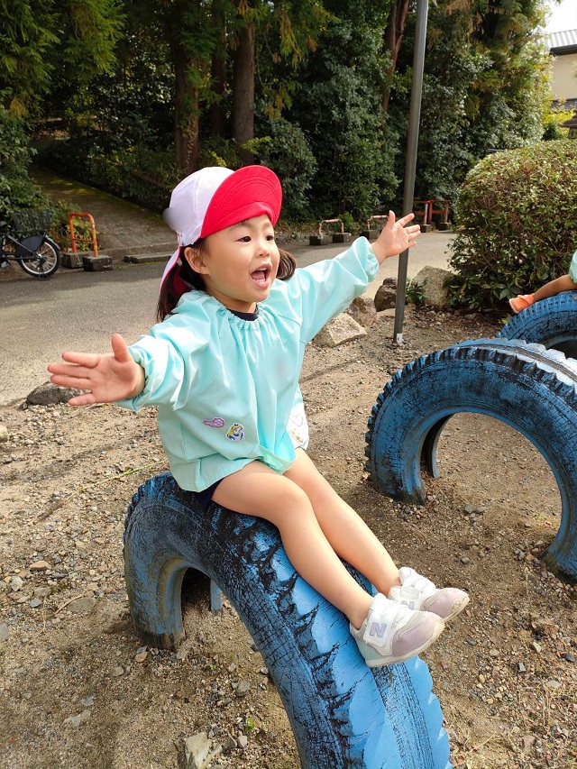 お天気が続き今日も元気に遊ぶ2歳児つぼみ組さん